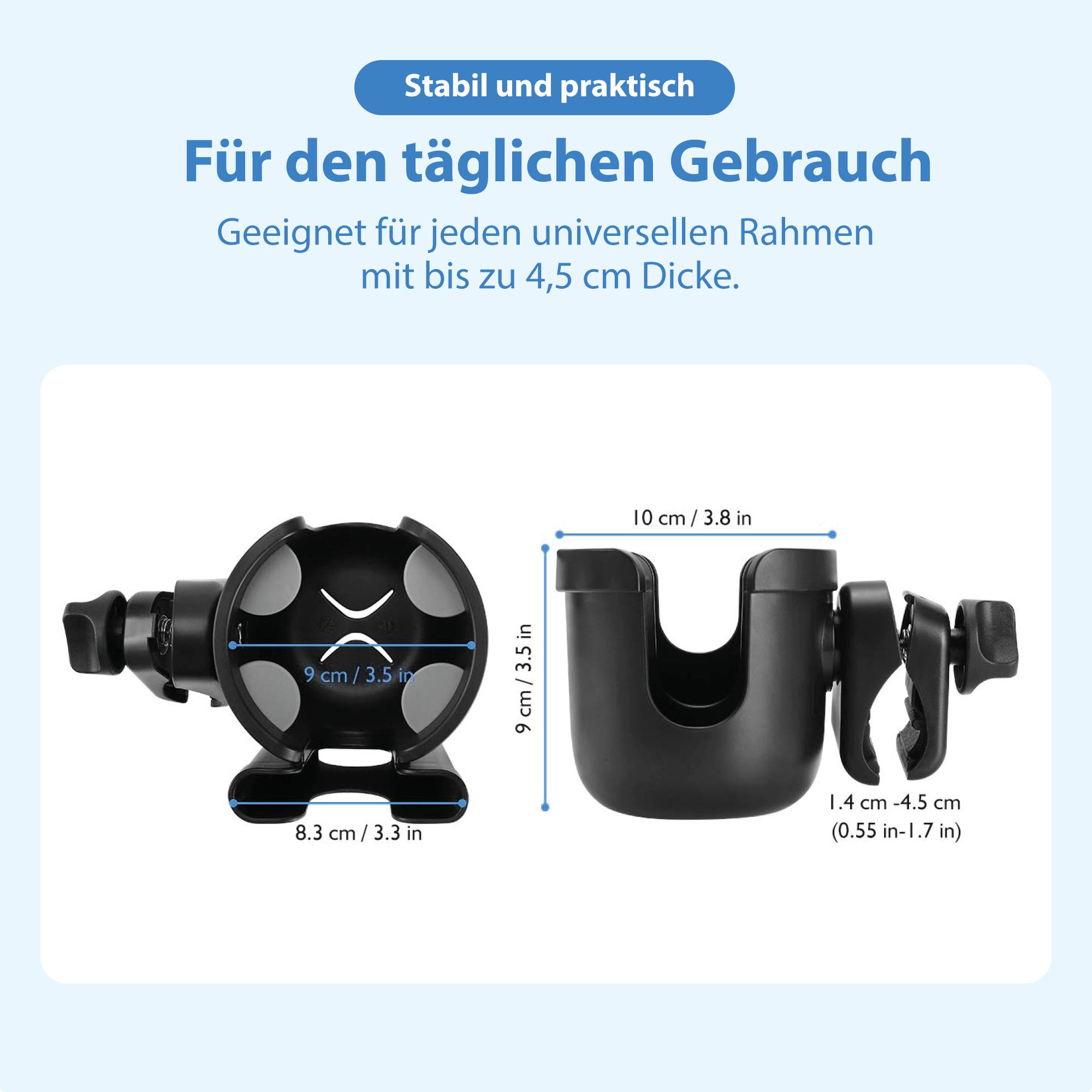- Maße des Halters: ca. 9 × 9 cm (geeignet für die meisten Flaschen/Becher)