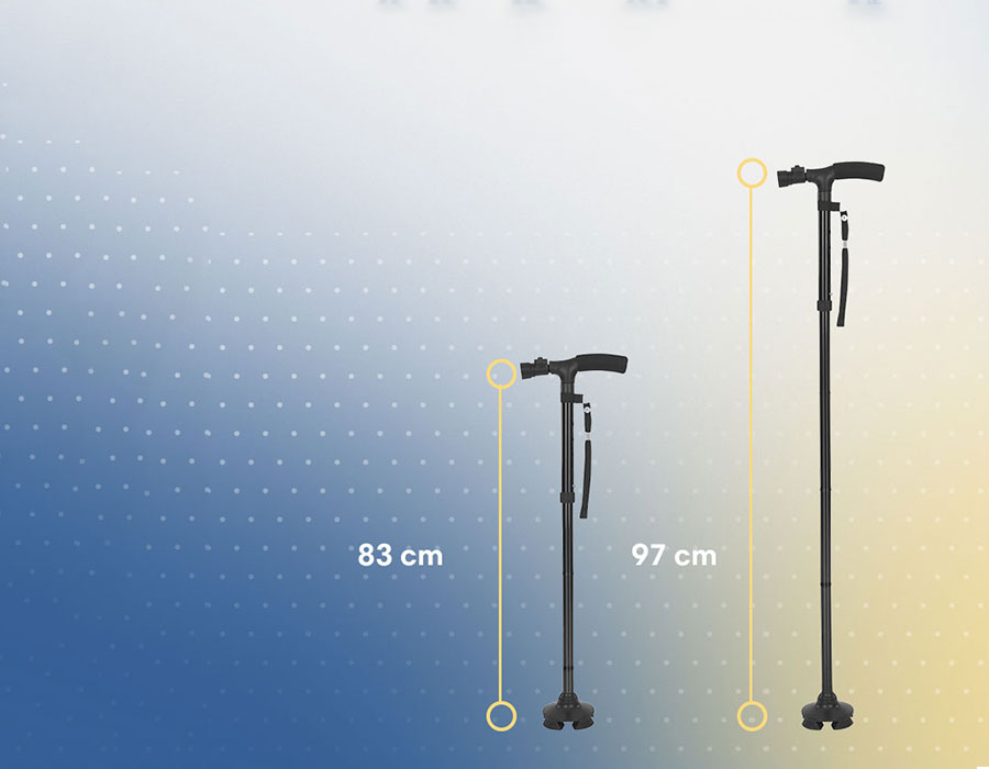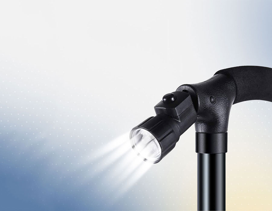 De wandelstok kan zelfstandig blijven staan en heeft een lichtgewicht ergonomisch design. Voor optimale veiligheid.