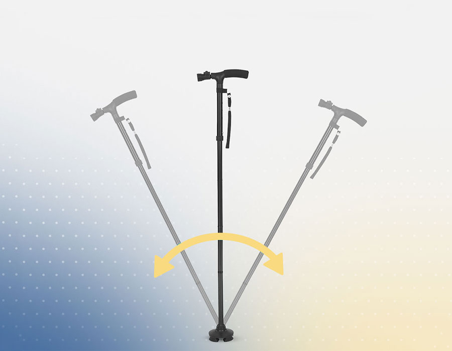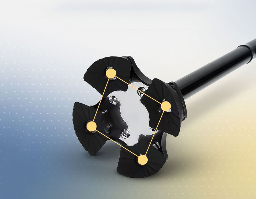 De draaibare 360 graden rubberen poten aan de onderkant ondersteunen uw volledige gewicht met behoud van flexibiliteit om te lopen, rennen of draaien. De wandelstok blijft stevig op de grond staan en glijdt niet weg. Zo behoudt je optimale grip en comfort.