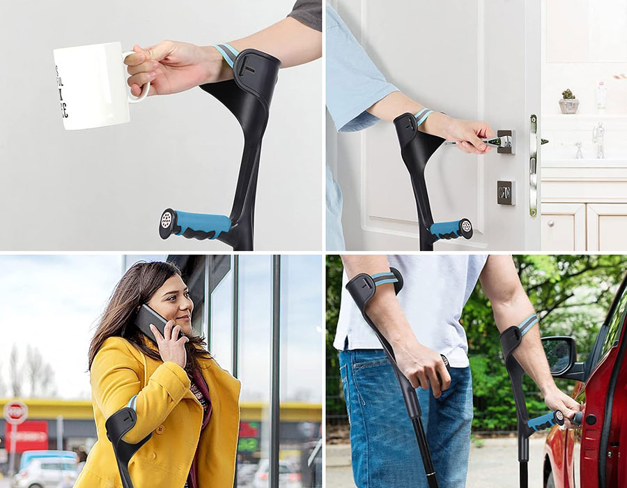 De handige elastische band zorgt ervoor dat de krukken niet op de grond vallen, waardoor je zonder problemen items kunt vasthouden of deuren kunt openen.