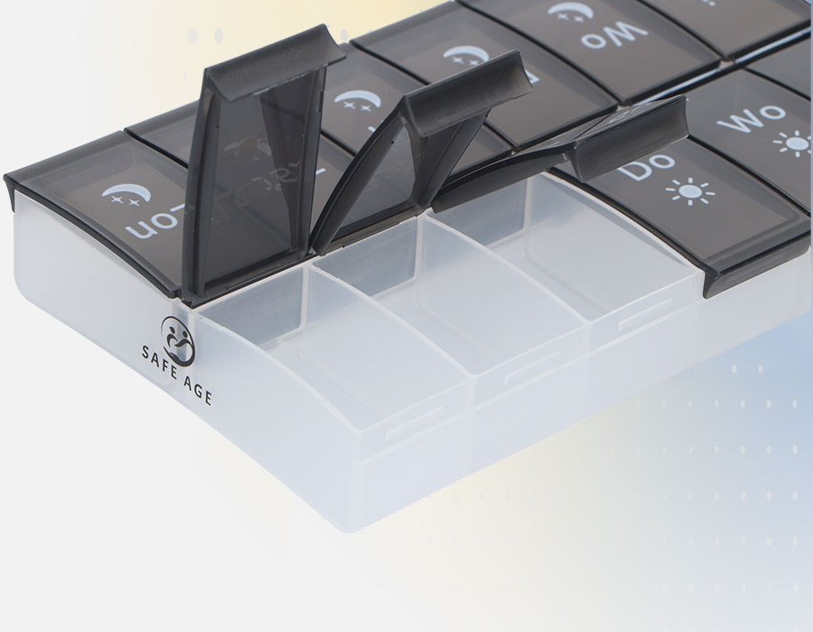 - Volledig BPA vrij en geen chemische stoffen. Ons Safe Age pillendoosje is BPA vrij en gemaakt van voedselveilig plastic en 100% veilig voor medisch gebruik.