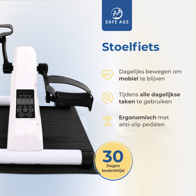 Geniet van je training zonder anderen te storen. Perfect voor gebruik in verschillende situaties. De Safe Age Stoelfiets is de ideale trainingspartner voor mensen die willen revalideren, hun mobiliteit willen verbeteren of gewoon actief willen blijven.