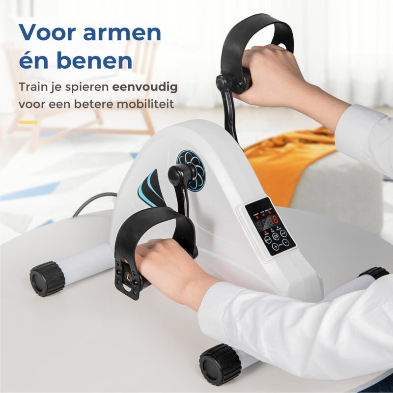 - Armen en benen workout in één stoelfiets. Kies voor benen of armen training en of je vooruit of achteruit wilt gaan. Instelbaar met afstandsbediening zodat je niet voorover hoeft te buigen.