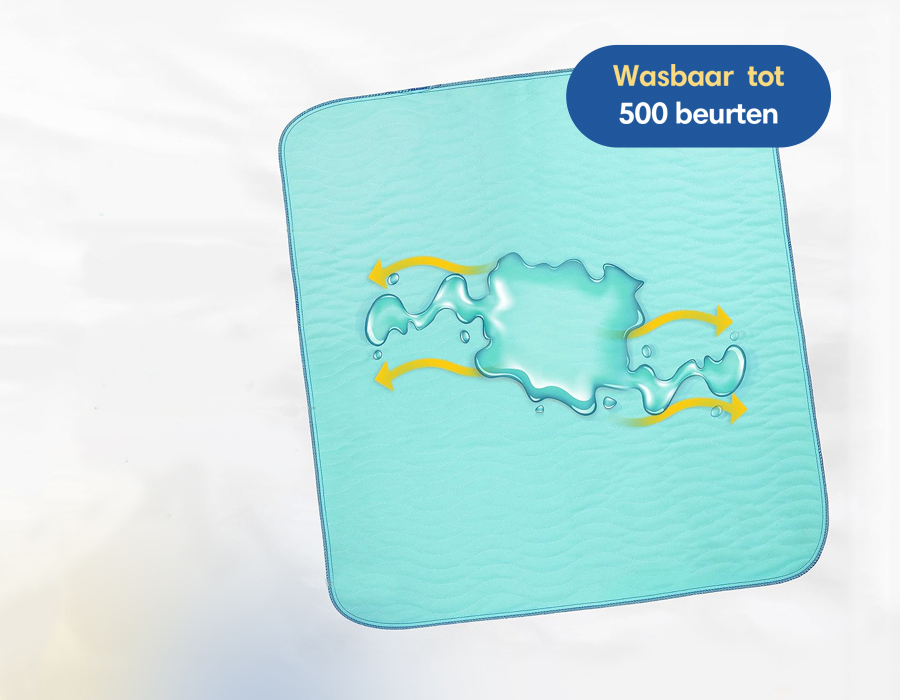 De onderlegger kan 500 keer gewassen worden en is daarom duurzaam en comfortabel. Er komen geen vlekken in de onderlegger en hij blijft er als nieuw uitzien, zelfs na meerdere wasbeurten. Kies voor een kostenefficiënte oplossing en minder verspilling dan bij een wegwerponderlegger.