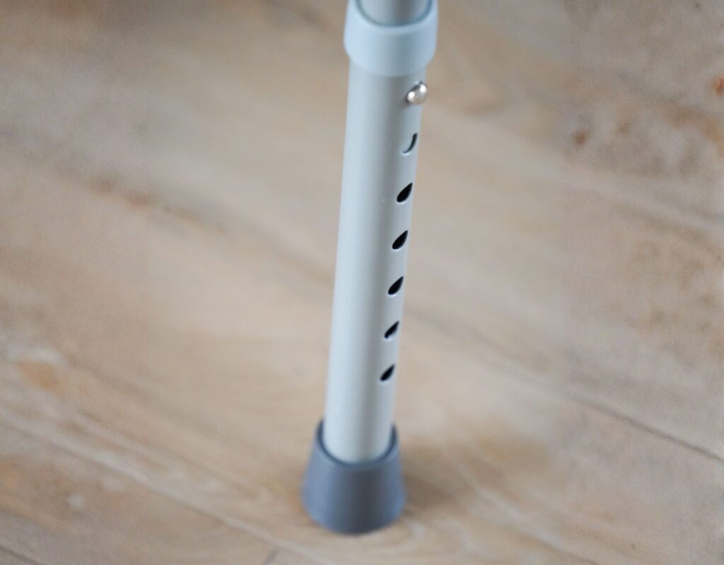 De toiletstoel heeft een sterk stalen frame en stabiele poten met antislip doppen. Hierdoor staat hij stevig en veilig tijdens het zitten en opstaan.
