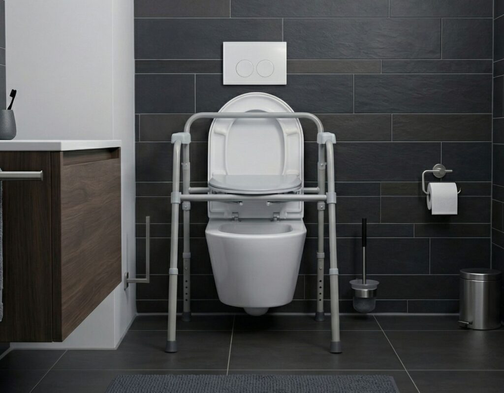 - 3-in-1 ontwerp – Te gebruiken als toiletstoel, toiletverhoger of steunframe voor extra stabiliteit in de badkamer.