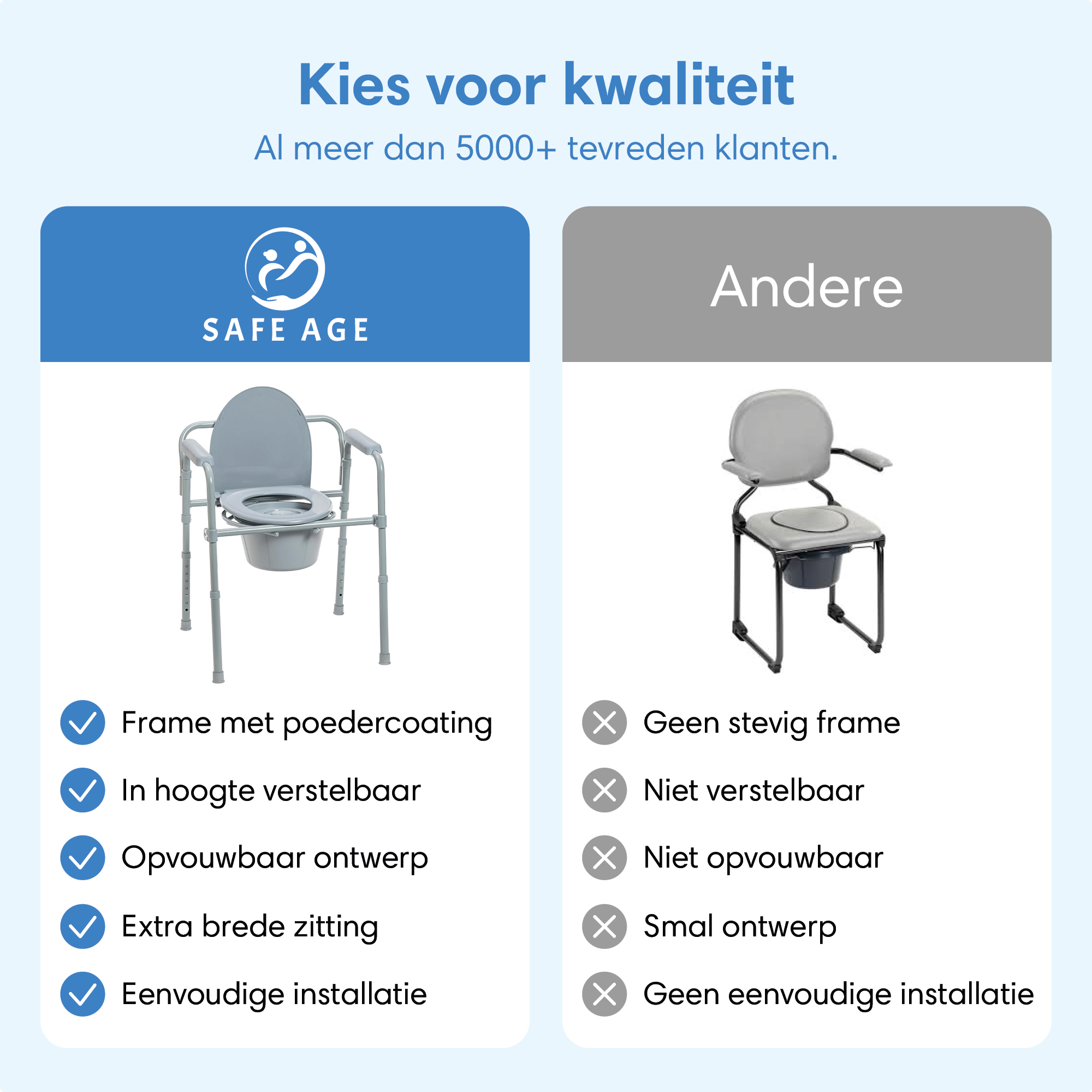 Met de Safe Age toiletstoel kies je voor gemak, veiligheid, comfort en vooral: je eigen vrijheid.