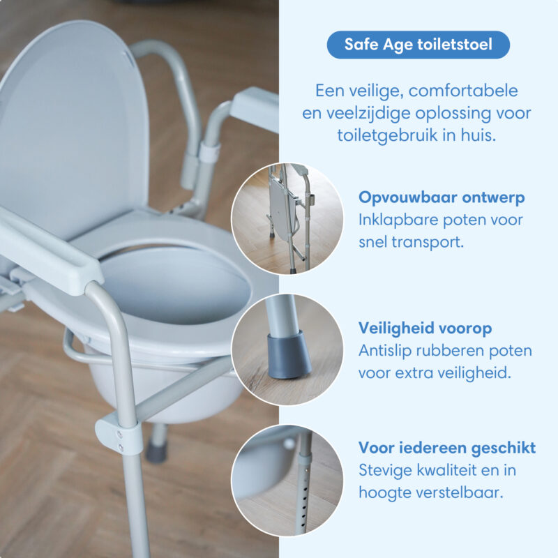 Veilig, comfortabel en zelfstandig naar het toilet met de Safe Age toiletstoel.