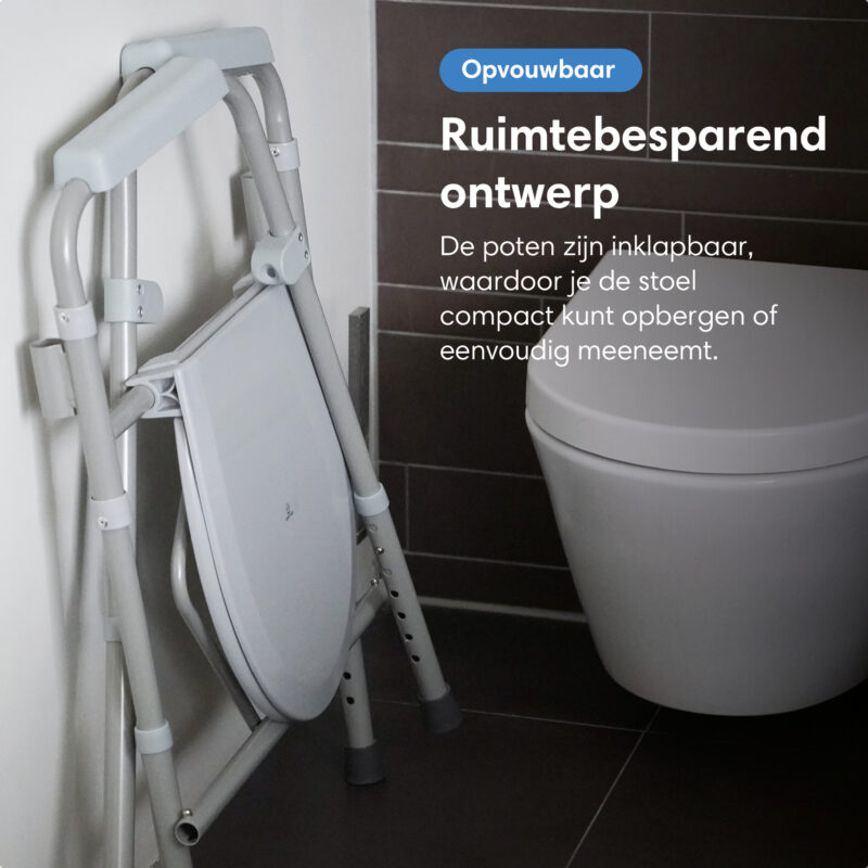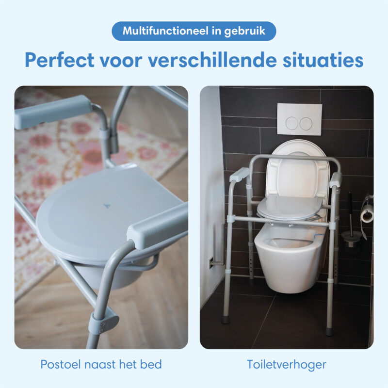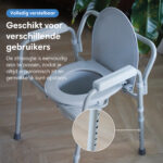 - 3-in-1 ontwerp – Te gebruiken als toiletstoel, toiletverhoger of steunframe voor extra stabiliteit in de badkamer.