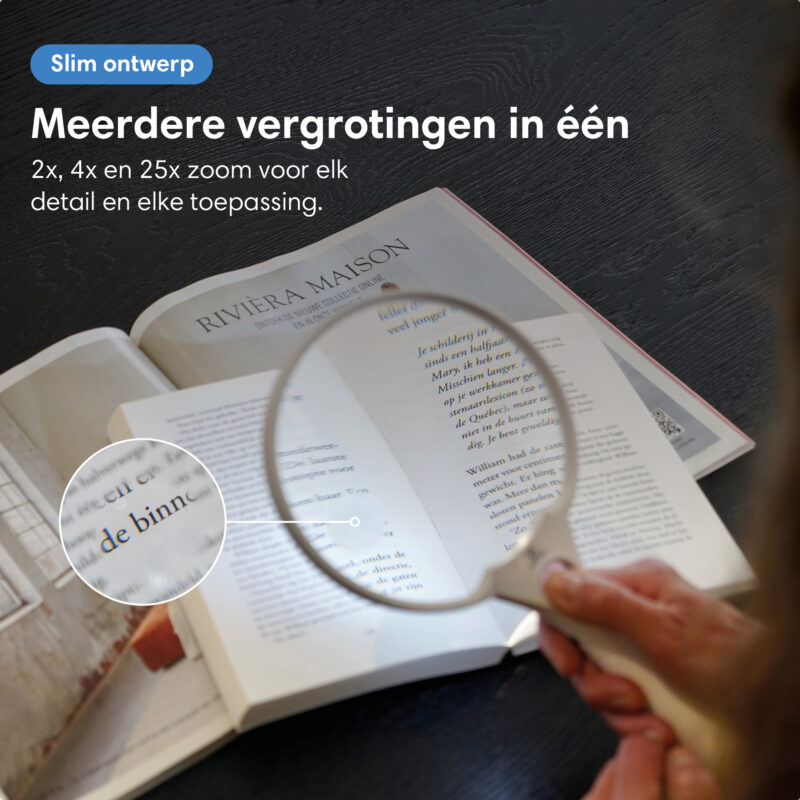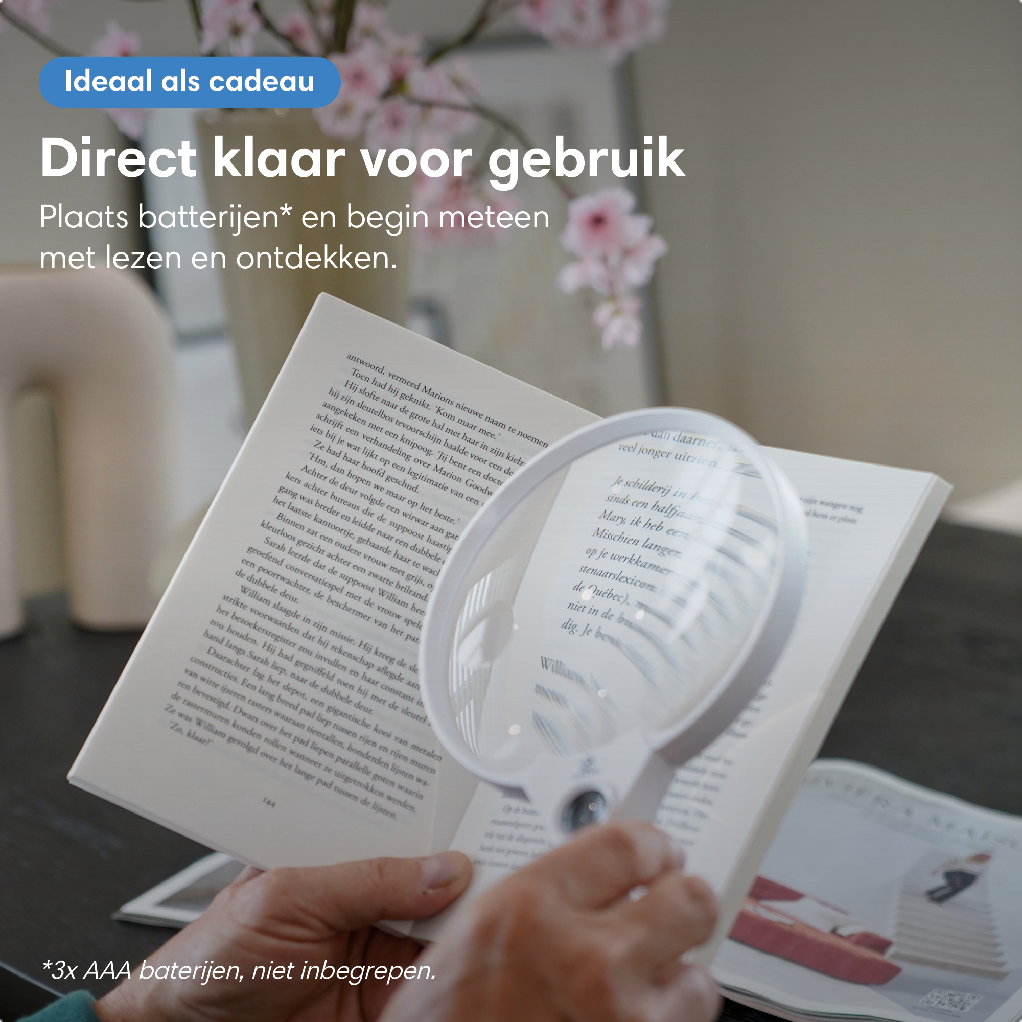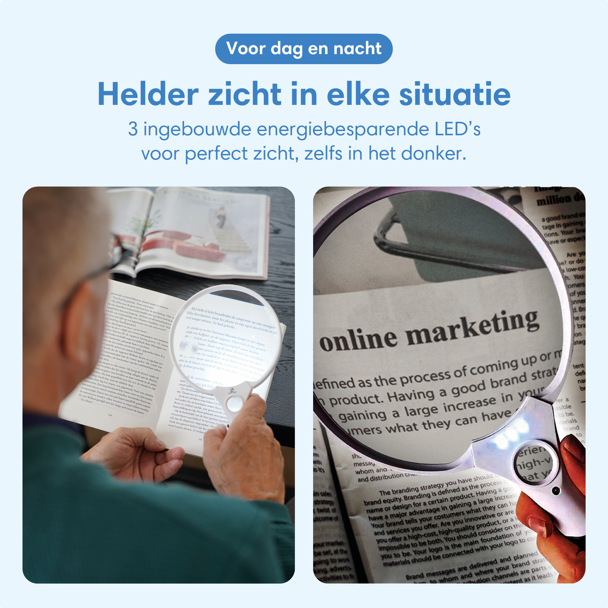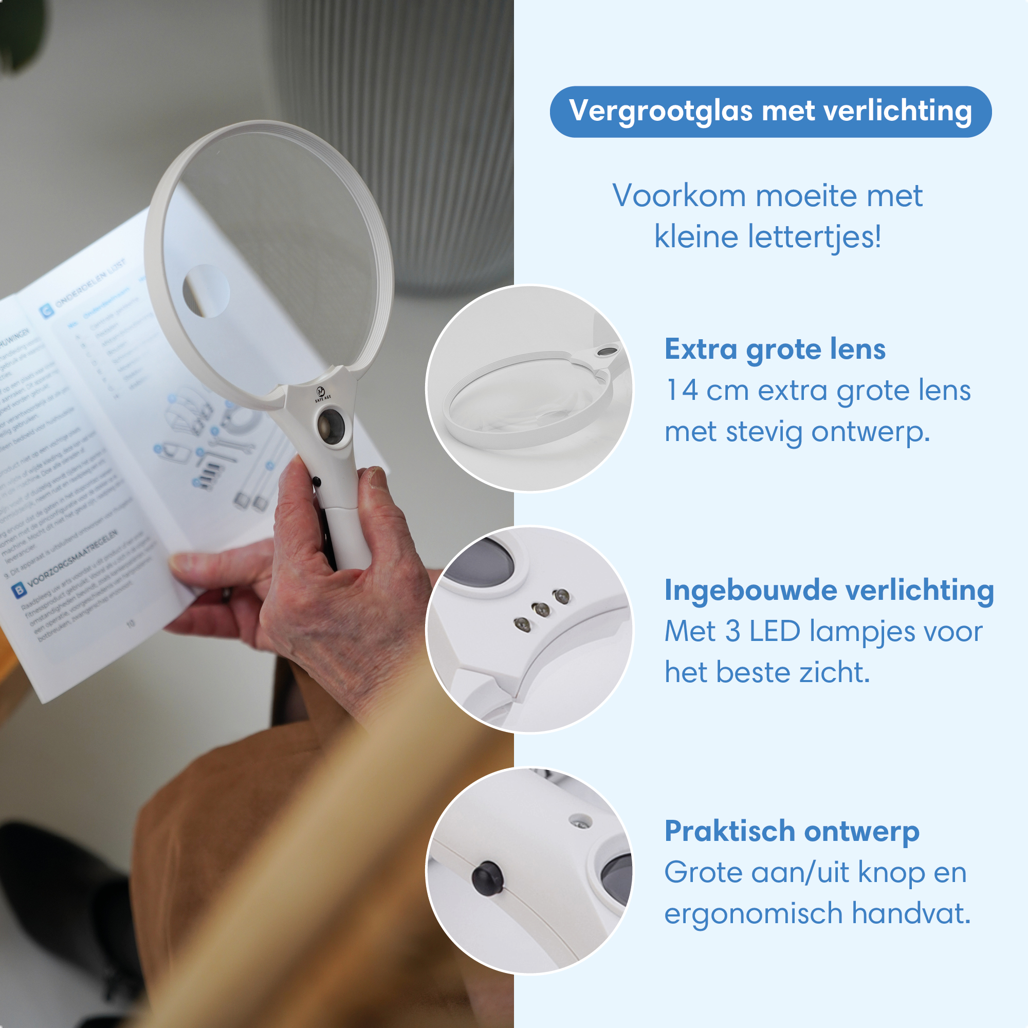 UPDATE 29/04/2026 : Vanwege de grote vraag naar het vergrootglas met verlichting tijdens deze actieperiode, hebben we er momenteel nog een beperkt aantal op voorraad. Wanneer deze uitverkocht zijn, duurt het ongeveer 4 weken voordat onze voorraad weer is bijgevuld. De actieprijs is dan niet meer van toepassing.